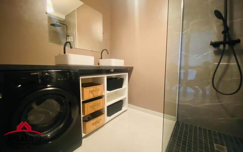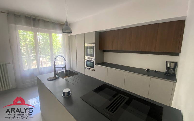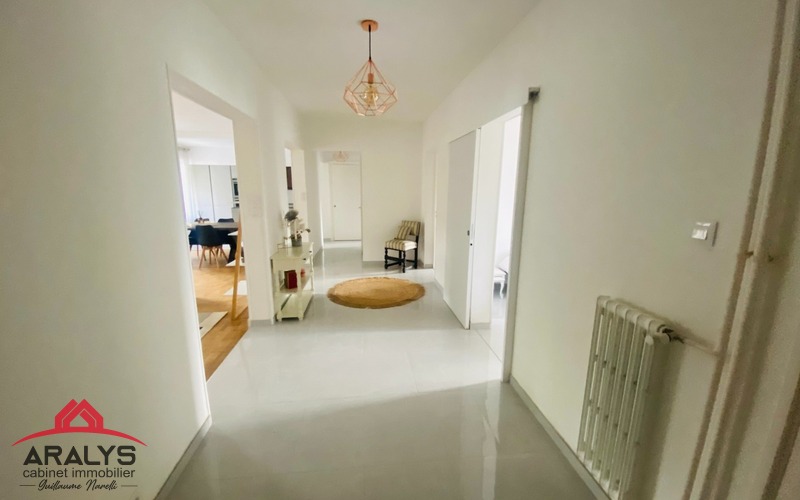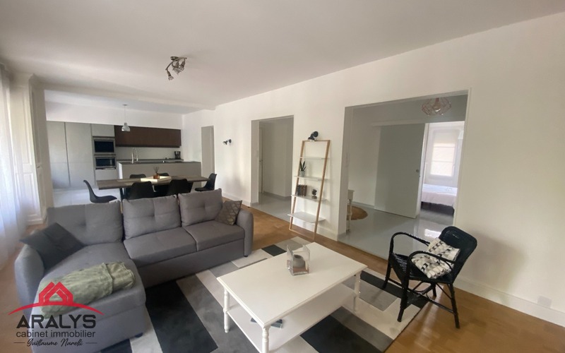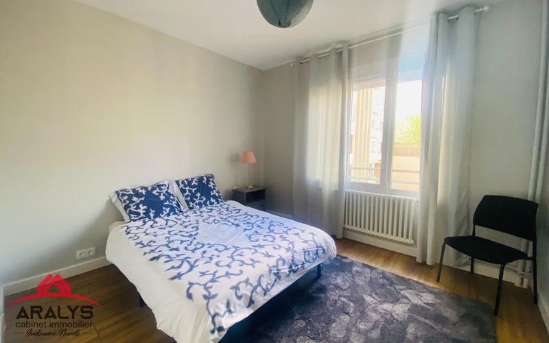 A Roanne, proche de la gare, dans une belle résidence sécurisée avec ascenseur, appartement loué meublé de 113 m² comprenant hall d'entrée, cuisine aménagée et équipée, salon séjour, 3 chambres, 2 salles d'eau, grenier et cave.