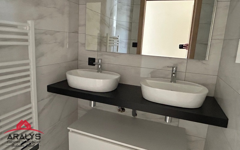 Ce bien offre une belle cuisine entièrement aménagée et équipée ouverte sur pièce de vie donnant sur terrasse bois clos de murs et sans vis à vis, 2 belles chambres avec chacune leur salle d'eau privative, WC indépendant.