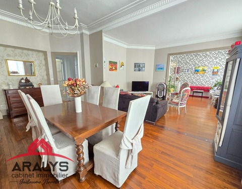EXCLUSIVITE CABINET ARALYS Proche Gare, dans un immeuble Art déco Au 1 er étage d’une copropriété très bien fréquentée Magnifique appartement seul sur palier de 189 m² habitables traversant. Il offre tout le charme des année 30 avec des parquets traditionnels, des cheminées d’ornement, staffs et belle hauteur sous plafond Côté pratique, il se compose d’un vaste hall d’entrée, d’une cuisine toute équipée avec ilot de petit...