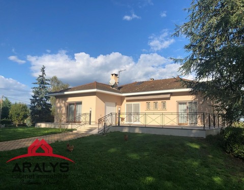 LE CABINET ARALYS IMMOBILIER VOUS PRESENTE un pavillon de plain-pied, à moins de 5 minutes du centre du bourg de Ouches. Construction de 2017 de plain-pied la maison est composée d’une cuisine équipée ouverte sur salon séjour, le côté nuit de deux chambres, une salle d'eau et d'un WC indépendant, un cellier et un garage. Le tout sur un terrain clos de plus de 700 m² avec une piscine 3.5 x 7 mètres, sécurisée. Cette maison est également...