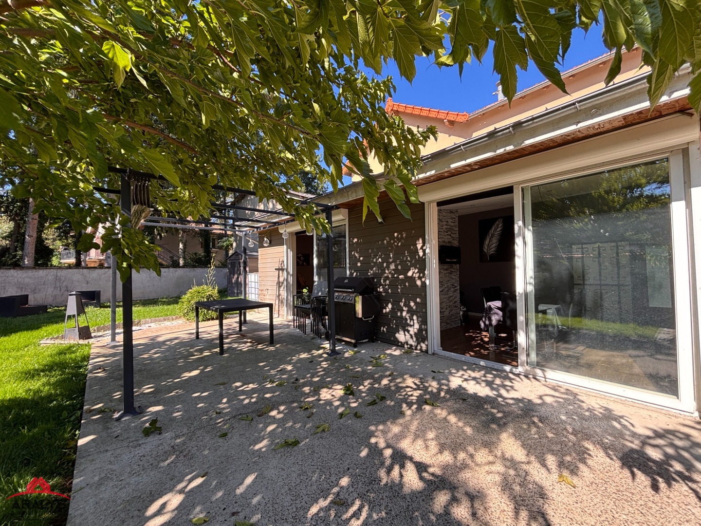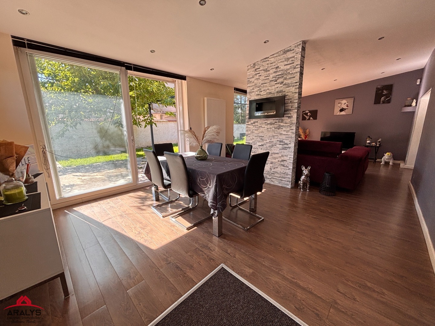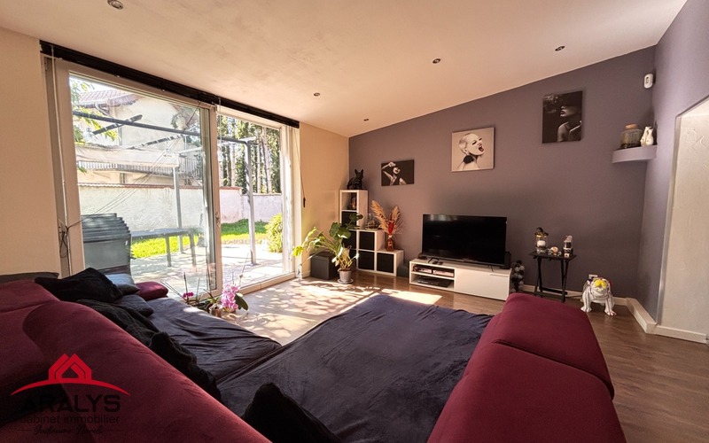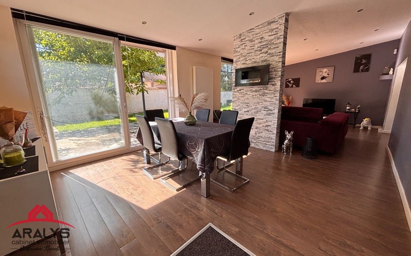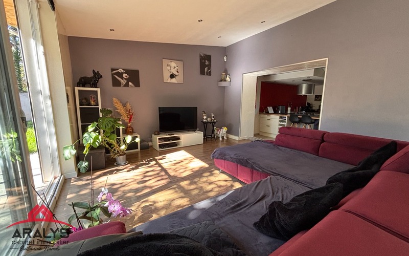 -Grande pièce de vie traversante et lumineuse avec accès direct sur le jardin grâce à de larges baies vitrées.