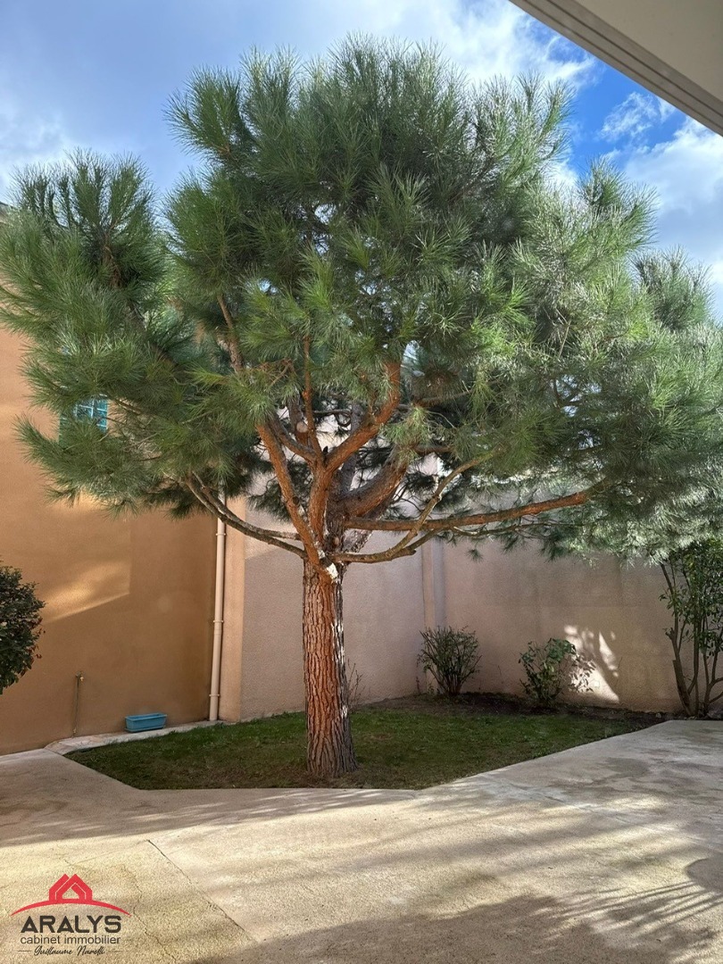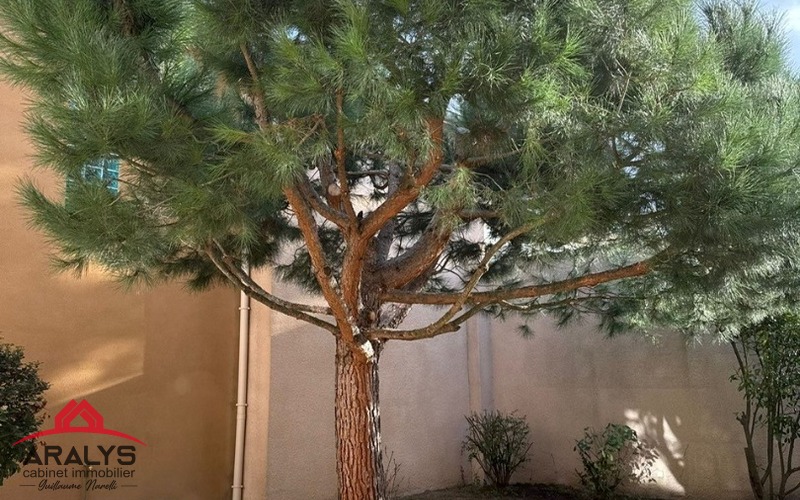 Dépaysement total avec la cour de 150 m² style hacienda...ombragée en partie par son pin parasol avec un préau idéal pour les soirées barbecue...