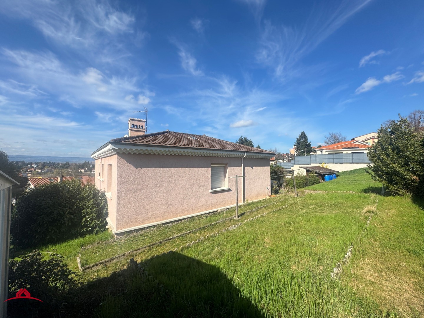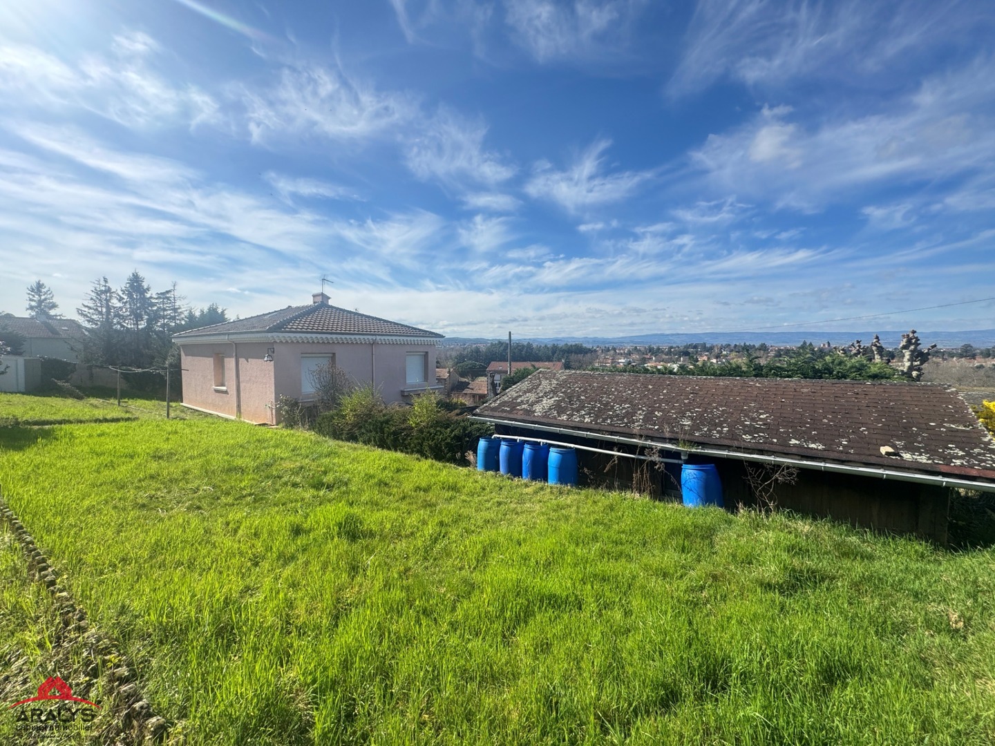 Le tout sur un terrain avec une vue dégagée sur la plaine, clos et arboré de 1 600 m², offrant un cadre agréable et verdoyant.